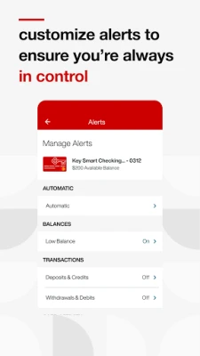 Customize your in-app experience for your unique needs and preferences with account settings and seamless access to the KeyBank features and products you use: