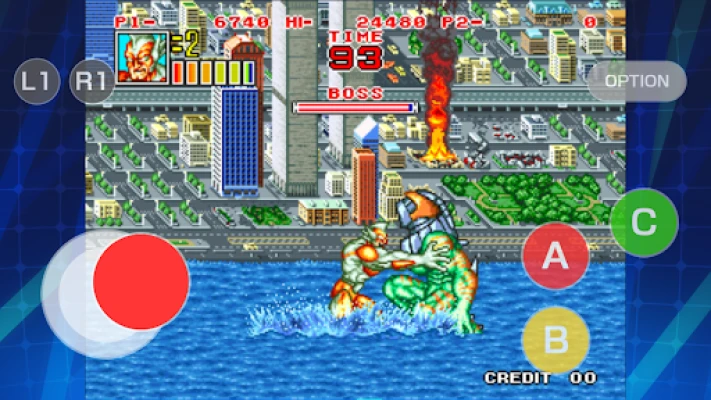 [Game introduction] KING OF THE MONSTERS 2 is an action game released by SNK in 1992. Choose 1 of 3 monsters to thrash aliens around the world and become the undisputed King of the Monsters! Work together in a 2 player co-op mode, or duke it out in versus mode!