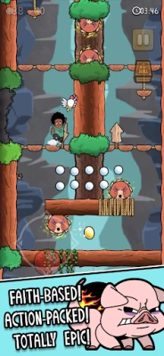Travel through colorful, lovingly crafted levels bursting with life and symbolism. Each stage reflects a unique biblical lesson told through parable form, painted with warmth and classic platforming charm.