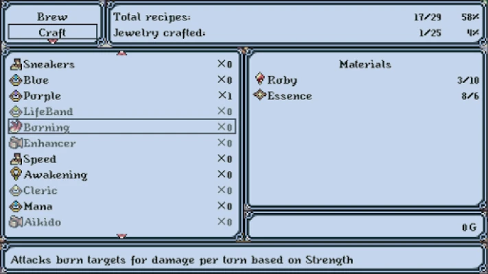-A crafting system where gems and monster essence are used to create relics