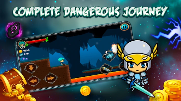 Being a cool game, Knight Legends is a platform game that comprises the essence of indie games and RPG adventure games. As you upgrade your character, you end up having many boss fights, causing rampage throughout the realm. Equip your hero however you want, there are dozens of character customization options available. Chose best sword and armor, but remember - don't put a cup on your head instead of a helmet. You’re a man on a mission to save beautiful princess like in legendary hero games. Moreover, this is an offline RPG, which means that you can play this platformer 2d game even offline!