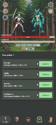 • Use diamonds to purchase permanent upgrades: reduce monster HP, increase EXP gain, and boost gold income