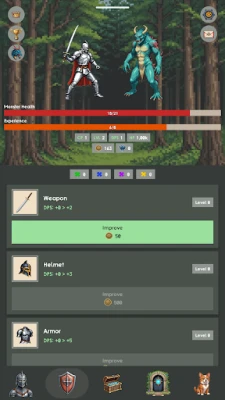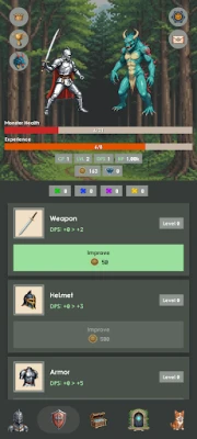 Watch your knight fight monsters automatically while you strategize upgrades. The battle never stops—even when you're offline! Return to find your hero has gained experience, gold, and leveled up.