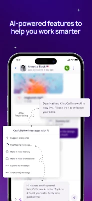 The app integrates seamlessly into your existing workflow, providing a unified experience across multiple devices. Whether you're expanding into new markets, setting up a virtual office, or improving team collaboration, KrispCall helps you grow your business without needing expensive infrastructure. With features like call tracking, call logs, and voicemail, it keeps your interactions organized and efficient.