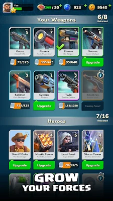 Recruit and unlock unique heroes, each with powerful abilities and weapons. Your heroes will lead the charge in every tower defense mission. Upgrade their skills, build their strength, and dominate the frontlines.