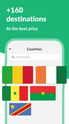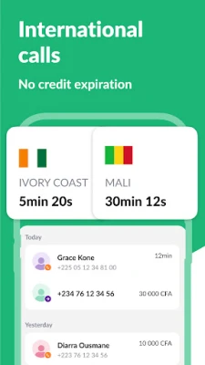 Calls to +160 destinations in the world: Mali, Senegal, Ivory Coast, Philippines, Angola, Madagascar, Burkina Faso, Nigeria, Ghinea, Cameroun, DR Congo, Mauritania, Ghana…