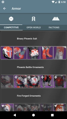 - track your exotic collections, cosmetic collections, armor and weapon sets