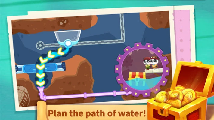Little Panda's town is wrecked by an earthquake. The treasure hunt is needed to rebuild the town. Join Kiki and Miumiu to plan the path of water and find the treasure chest!