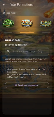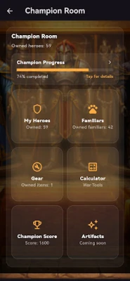 Built for both casual and advanced players, the app brings together powerful tools across multiple dedicated rooms to support every aspect of gameplay — from war formations to gear optimization.
