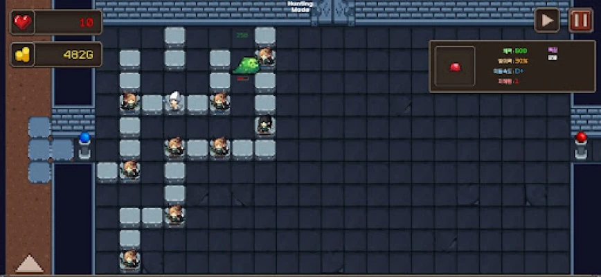 Become the master of your dungeon and create your unique strategic dungeon! When the game starts, players can freely place walls to build their unique dungeon. You must block the enemies that follow the paths created by these walls. How many enemies can your dungeon hold back?
