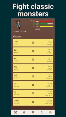 In Malic’s Legacy, begin your journey by choosing your class—Knight, Mage, or Archer. Defeat powerful monsters, complete tasks, and upgrade your equipment to become the ultimate hero. With over 45 monsters to conquer, every battle is a new challenge in this text-based RPG.