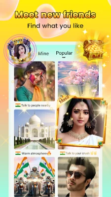 Make new friends easily on Masti. Create your own room, host a themed party, or engage in private chats. Share music, play games, and chat with strangers or friends.