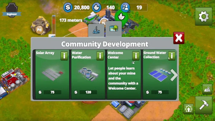Hire technical advisors who will guide you through building your mine by extracting essential minerals from the ground.