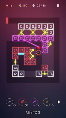 The game was created in an abstract neon-vector minimalist style. It will suit the taste of casual players who love to pass the time and relax playing an easy and casual game. An uncluttered, neon-vector style, pleasant design, smooth gameplay and atmospheric background music will immerse you into the tower defence world even more.