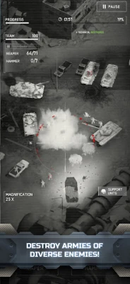 Strengthen your forces with a variety of support units, like tanks to crush ground enemies, jets for high-speed airstrikes, helicopters for precise support. Use reinforcements strategically to outmaneuver and outgun your foes.