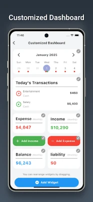 • Customizable Dashboard: Personalize your dashboard by adding, removing, or rearranging widgets to suit your unique financial needs.