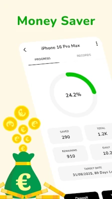 Start saving smarter with Money Saver – the ultimate app to save money and reach your savings goal. Whether you're saving for a dream vacation, a new phone, or building an emergency fund, it helps you plan and achieve your goals with ease.