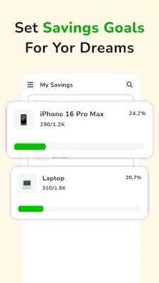 🎯 Set and Manage Savings Goal – Create multiple goals tailored to your needs and budget. Whether it’s short-term or long-term, define a target amount, set deadlines, and track progress — making it easier to save money.