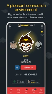 - Monkey VPN has three different ways of connecting: Sonogong, Jeopalgye, and Saojeong.