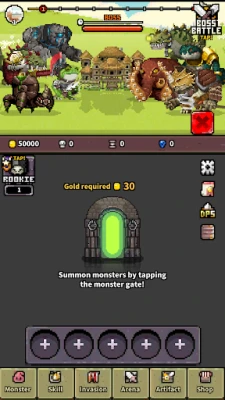 - Tap the monster gate to summon monsters one step higher each time.