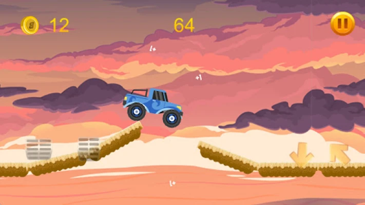 Conquer four adrenaline-packed levels overflowing with nonstop action! Guide your monster truck using the left and right arrows—move forward, backward, or rocket into the air. Collect coins to boost your score and unlock new trucks along with more challenging levels. Stay alert—one flip or crash into a pit will end your run. The farther you go, the higher your score soars!
