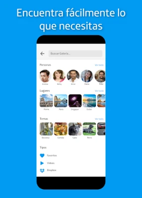 Comparte tus fotos y vídeos con tus amigos a través del email, whatsapp y en redes sociales. Crea copias de seguridad de tus fotos, vídeos y documentos y podrás liberar espacio de tu móvil para que esté siempre en forma.