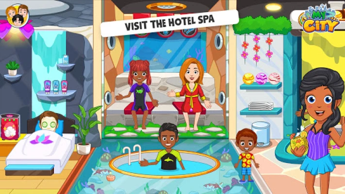 Prepare yourselves for the best holiday in My City: Hotel games! Discover the lobby and check-in to experience why those who visit the hotel refuse to check-out! Discover the restaurant and listen to music, take a nap in the Family room, VIP room or Honeymoon suite or indulge in wellness. Hang out at the spa to experience rest and relaxation at its finest. Make sure to also find your way to the rooftop and be amazed at the biggest pool ever to hit My City! What are you waiting for? Book your next trip for the holidays and travel to My City: Hotel to make sure the fun and adventure never stops!