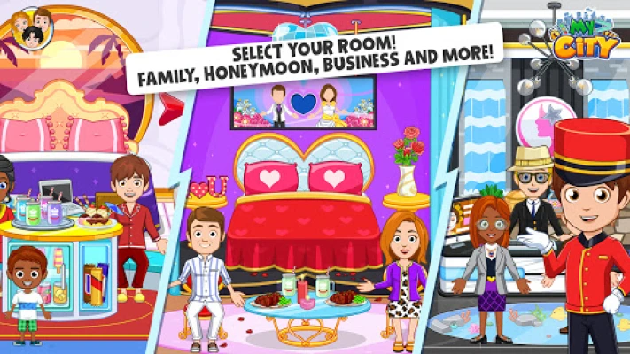 * Roleplay with family and friends, dress up in various clothing, and discover every room in My City : Hotel.