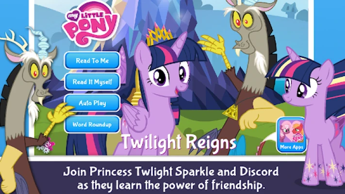 Being a princess doesn't come with an instruction manual, but neither does becoming a hero! In TWILIGHT REIGNS, the first ever MY LITTLE PONY deluxe storybook app, Twilight Sparkle is Equestria’s newest princess, and she’s looking for a way to prove herself worthy of the title. When a villainous centaur starts stealing magic from Unicorns throughout the land and even threatens to consume the Alicorn princesses’ magic, Twilight wants nothing more than to track down Lord Tirek, but someone else is chosen in her place. Discord! Twilight needs help from her closest friends, and a surprise ally, to restore magic to Equestria and unlock a kingdom fit for a princess.
