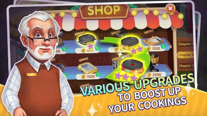• Hundreds of fast-paced time-management levels with a variety of cooking game modes.