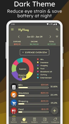 How to manage money and track expenses with MyMoney? It's simple, just add an expense record when you are spending somewhere. MyMoney will take care of it. See every dollar you spend to pay a bill, buy a coffee or anything with ease. MyMoney is your ultimate budget planner app that helps you plan monthly budget, achieve your budget goals and save money effectively. Too much spending on coffee? Set a budget on coffee and surely, you would not cross the budget goal. This limits your money use and helps you control your spending behavior. If you really want to track and save your money, MyMoney is the money tracker app that can really make it simple and easier for you.