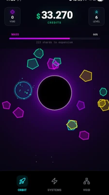Pull in floating shards as they orbit your core. Each shard increases your mass and brings you closer to expansion.