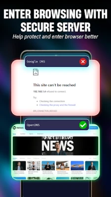 • Fast & Secure DNS Changer – one‑tap switch between trusted public DNS providers.