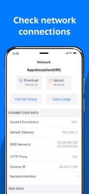 - Provides Wi-Fi information & analysis with network details (SSID, BSSID, vendor, IP address, IPv6 address, subnet mask, broadcast, Wi-Fi security type, Wi-Fi channel and bandwidth)