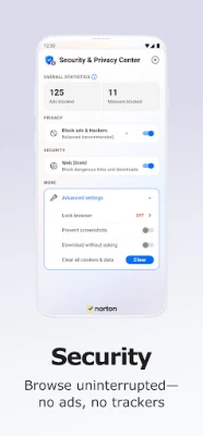 Norton Private Browser is a free feature-packed private browser with AdBlock designed to make secure browsing fast and easy to use. Developed by the cybersecurity experts at Norton, Norton’s private browser automatically blocks ads and trackers that slow you down and includes advanced security and privacy features such as anti-tracking, full data encryption, Passcode lock and unlock, and more for the best private browser experience on Android devices.
