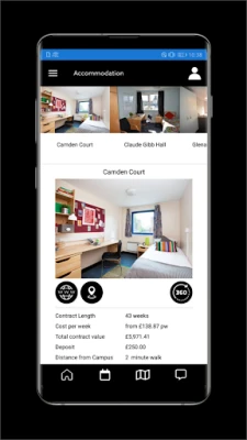Search for available PCs and Macs across campus, and what software is available where. Scroll through the various food outlets on campus to see where they are and what they sell. View University accommodation and, with 360° room tours, you can find out more about each location. You can also connect and stay safe when on campus using Safezone