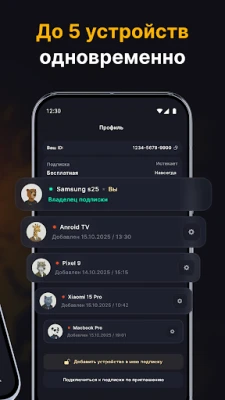 Семейная подписка — один аккаунт до 5 устройств: смартфон, планшет или ноутбук.