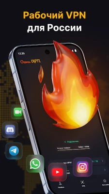 Огонь VPN — интернет без границ. Безлимитный трафик, высокая скорость, защита данных и свобода в один клик. Установите приложение и получите доступ к миру без ограничений