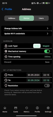 Main features of the application: - User management - NFC tag/card management - Address management - Permission management - Visitor Management - Hardware device management - History Logs - Notifications for unauthorised access