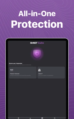 OrNET Security Suite, the master VPN and security powerhouse! Our feature-rich suite combines the strengths of a proxy server, ad blocker, Orbot, and a robust password generator to elevate your online experience.