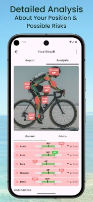 • Easy photo upload to check your position on different types of bikes: road, city, time trial, and triathlon.