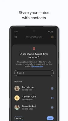 • Emergency Sharing: Share your real-time location and critical info with your emergency contacts. Also works with Google Assistant.