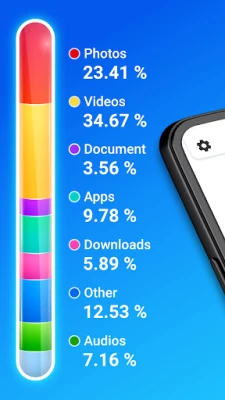 Having trouble clearing up space on your device? Phone Storage Cleaner helps you review and delete unwanted files. This app allows you to scan your photos, videos, documents, and downloads, enabling you to select and delete them.