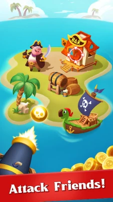 You can raid other pirates and steal their coins. Good way to build up your fortune! BOOM! BOOM! BOOM! Cannons are aiming at islands! Use cannons to attack your matey and take revenge on those who have attacked you.