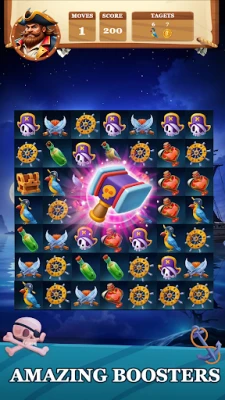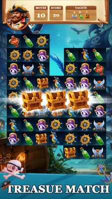 In Pirate Treasure Match Quest, embark on an exciting adventure where your mission is simple - match three or more elements to clear them from the board and uncover hidden riches! Navigate through challenging obstacles and conquer hundreds of levels as you sail across the game. Every match brings you one step closer to discovering pirate treasures and becoming the pirate treasure hunter!