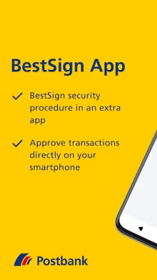 The Postbank BestSign app is a separate app for securely authorizing orders in online banking. The app only includes the BestSign security procedure. Create and activate BestSign once, then you are ready for authorizing.