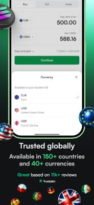 • Use 40+ fiat currencies, depending on your location