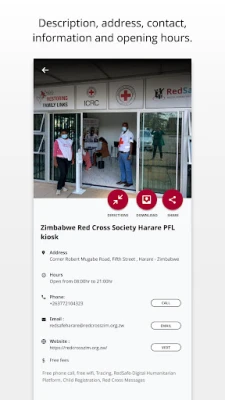 Humanitarian Services to find on interactive map the location of humanitarian services with their description, address, contact information and opening hours.