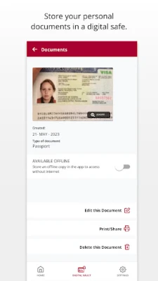Digital Vault to upload and safely store digital copies of your most important documents such as passports, birth certificates, medical records as well as to save a backup of your phone contacts.