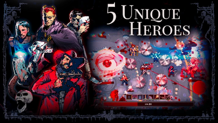🌌 Diverse Heroes: Choose your pixel hero, each with their own scars and skills, to withstand the death incoming. A wielder of blades, a kunai master, and more—in this monster survival game.
